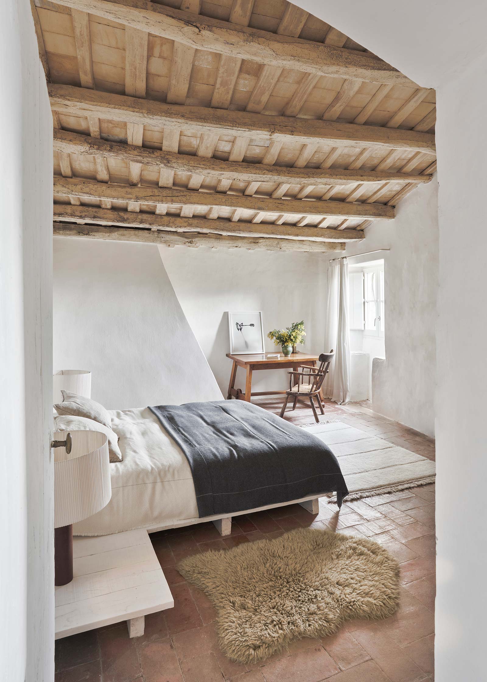 Le tapis Woolable de Lorena Canals a une forme arrondie, imitant la silhouette d’une peau de mouton, et est fait de poils de laine duveteux tuftés sur une base en coton.